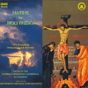 The appeal of this classic CD (and its companion disc, B036) lies in the fact that it is a recording (somewhat abridged) of an actual service, and thus comes very close to capturing the "atmosphere" and "ethos" of this unique Orthodox Holy Week service. The London Cathedral Choir, under the capable hand of Fr. Michael Fortounatto, sings (in Church Slavonic) musically, tunefully, and with restraint. This makes them a fine model, worthy of emulation by Orthodox church choirs of all sizes and capabilities. There is a well-written explanation of the service (E only), but no text translations are included.--V.M.